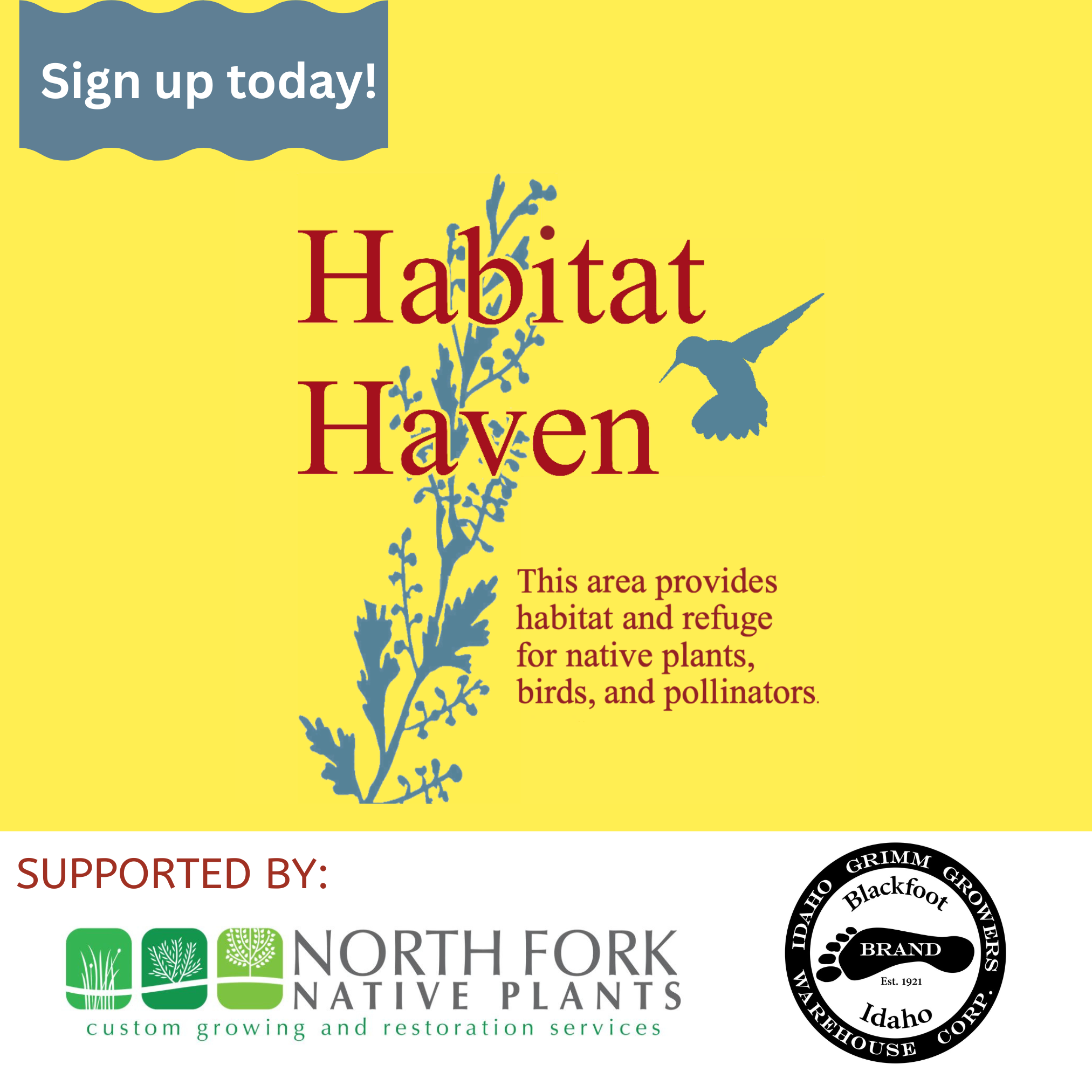 Pick up your Habitat Haven materials at the Portneuf Valley Environmental Fair at Lookout Point in Pocatello from 11 a.m. to 3 p.m. on April 18th.